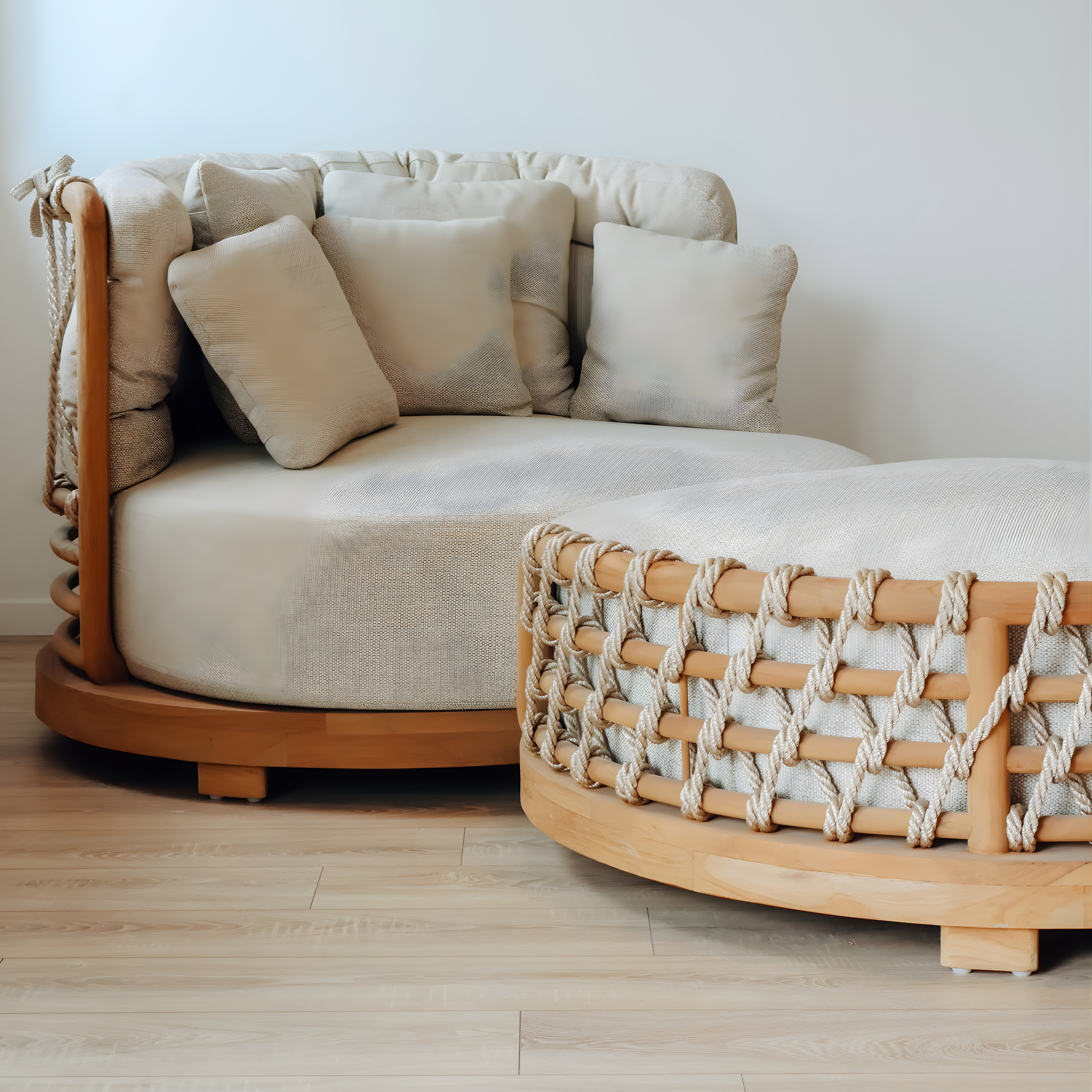 Material Available in Multiple Wood Finish Fabric and Rope Colors.